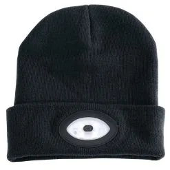 Beanie Hat With Rechargeable Torch, One Size, 1W, 100 Lumens, Black