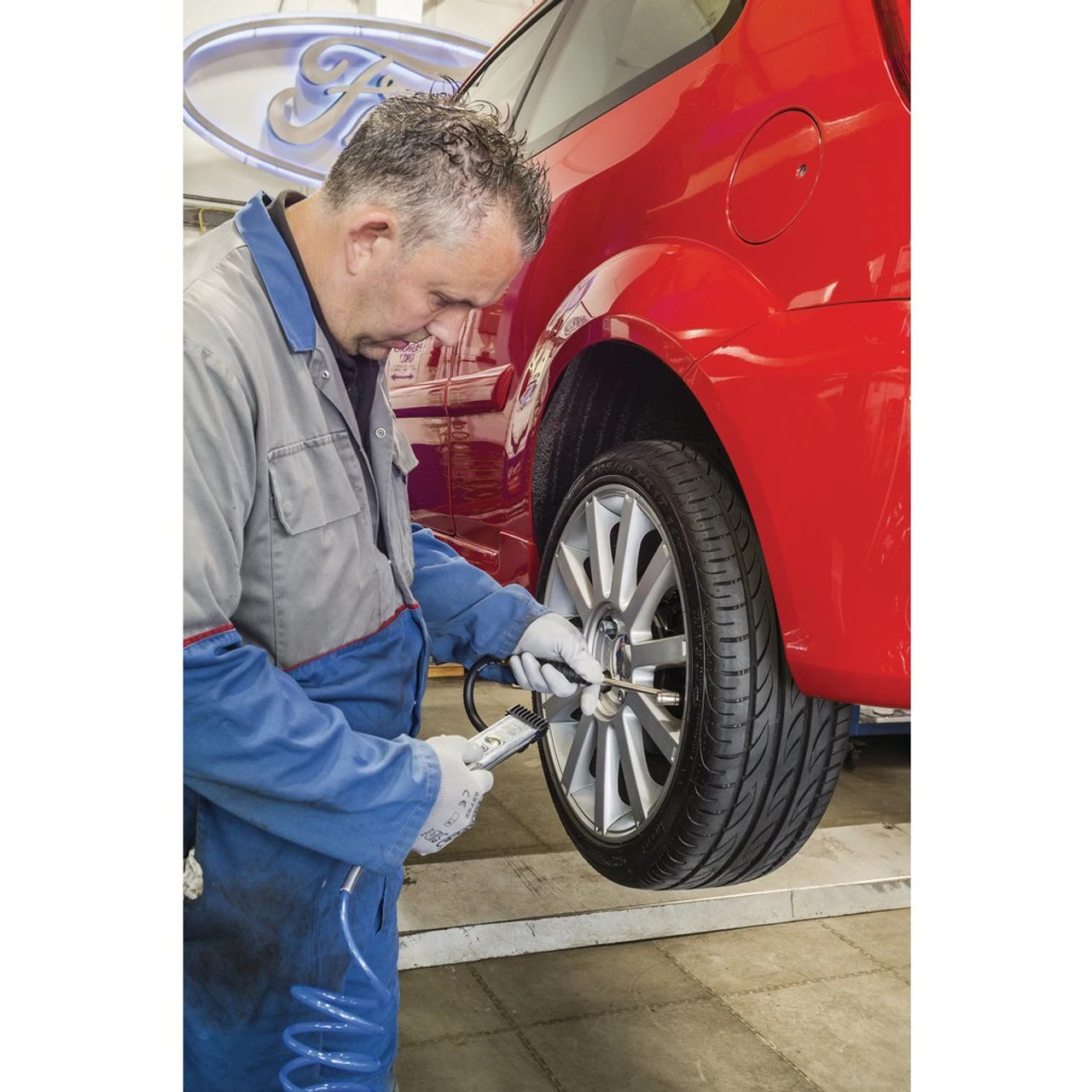 Inflator with twin open-ended push on connectors. Allows fast and simple tyre inflation.