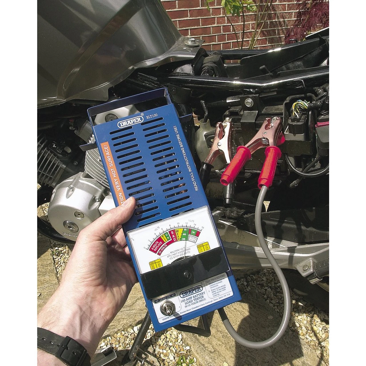 Suitable for testing 6 and 12V lead acid batteries, charging and starting circuits found on most motorcycles, cars, light commercial vehicles, tractors, boats etc. Tests: state of charge, cranking ability, charging system output and starter motor. Tests up to 100A.