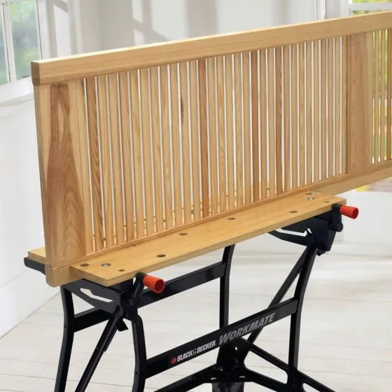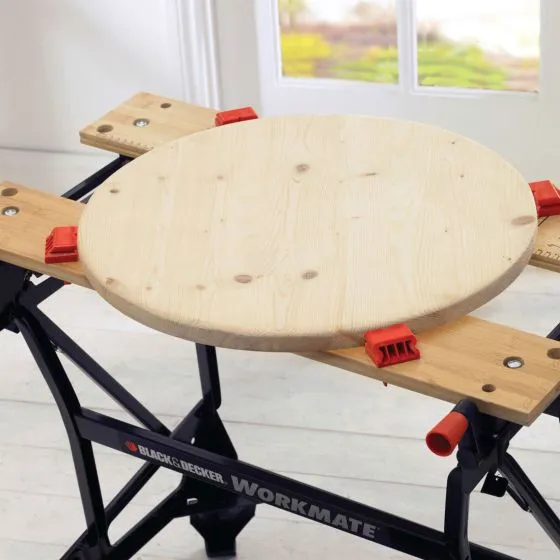 The Black & Decker WM626 Tough Dual Height Workmate can be used as a workbench, bench tool stand, vice, or sawhorse. With a durable steel frame construction that folds flat for compact storage and easy transport. Dual clamping cranks increase clamping force and versatility.