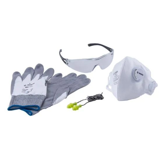 Bosch Work Safety Kit inc Gloves, Glasses, Ear Plugs & Fine Dust Mask 2607017183