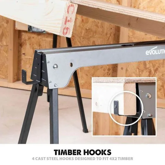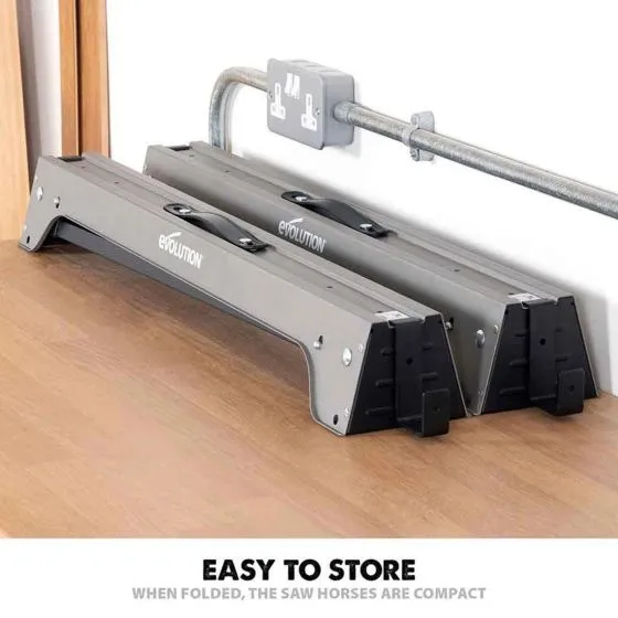 The Evolution 005-0003 Metal Saw Horse is a must-have piece of kit for every tradesman or DIY enthusiast. Whether on-site, in the van, in the workshop, garage, or garden shed, the Evolution sawhorses are compact, light-weight, and durable to support your heavy-duty construction projects.