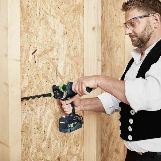 The large number of attachments, combined with perfectly matched accessories, make the QUADRIVE an unrivalled percussion drill for a wide range of possible uses. What about your hand twisting dangerously if the tool suddenly jams? Festool’s intelligent KickbackStop minimises the risk of this happening. Give it a go: The best drill that Festool has ever built!
