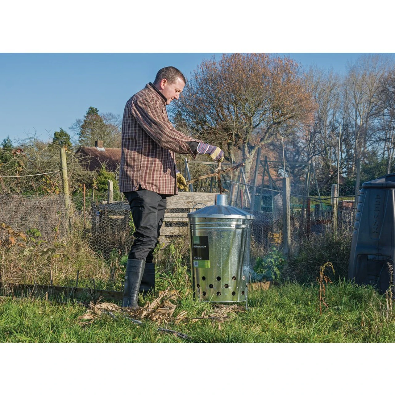 85 litre traditional garden incinerator, made from galvanised steel. Total height (including lid and leg) 800mm. Suitable for everyday use.