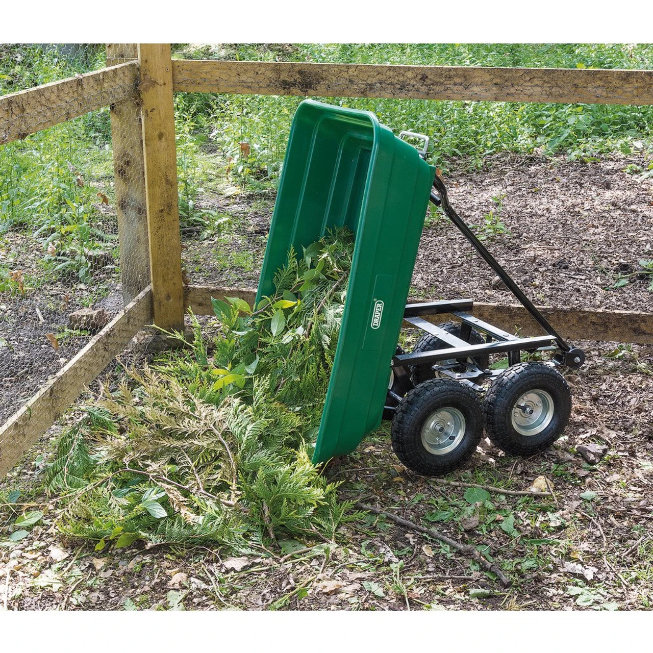 - Robust steel frame with heavy-duty plastic tipping tub