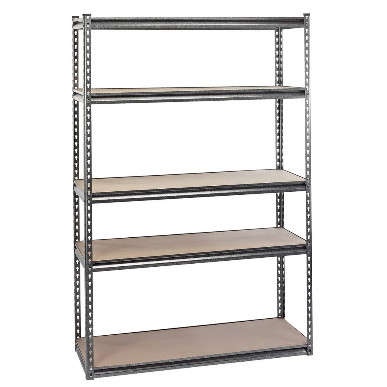 - Heavy-duty and robust steel shelving unit with five adjustable shelves