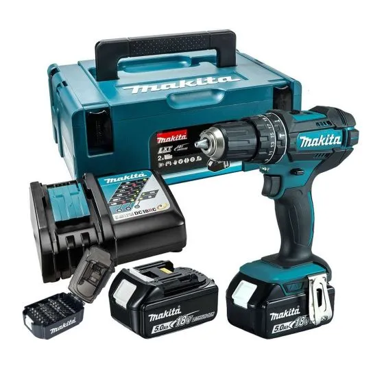 Makita DHP482JX14 18v LXT Cordless Combi Drill Inc 2x 5.0Ah Batteries, B-68323 Bit Set, Charger & Makpac Carry Case