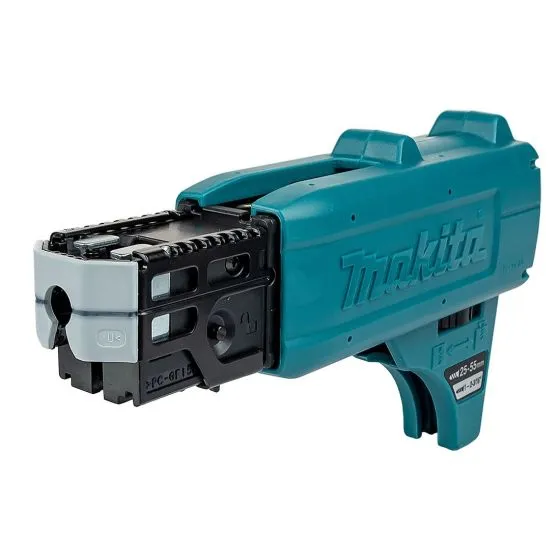 The Makita 199146-8 Collated Autofeed Screwdriver Magazine Attachment delivers easy and reliable autofeed capability. The compact, ergonomic autofeed design offers less weight and efficient power. Its ideal for production board attachment to metal or wood. Collated screw length capacity ranges from 25mm to 55mm for increased versatility. For use with specific Makita corded and cordless screwdrivers.
