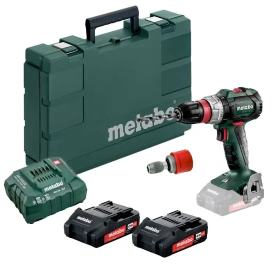 Metabo 18v BS 18 LT BL Q Cordless Drill Driver inc 2x 2.0Ah Batteries, ASC 30-36V Charger in Carry Case 602334550