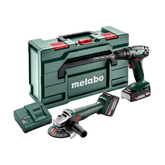 Metabo 2.4.3 18v Drill Driver & Angle Grinder Combo Set Inc 1x 2.0Ah & 1x 4.0Ah Batteries, 1x SC 30 Charger & 1x metaBOX 165 L Carry Case