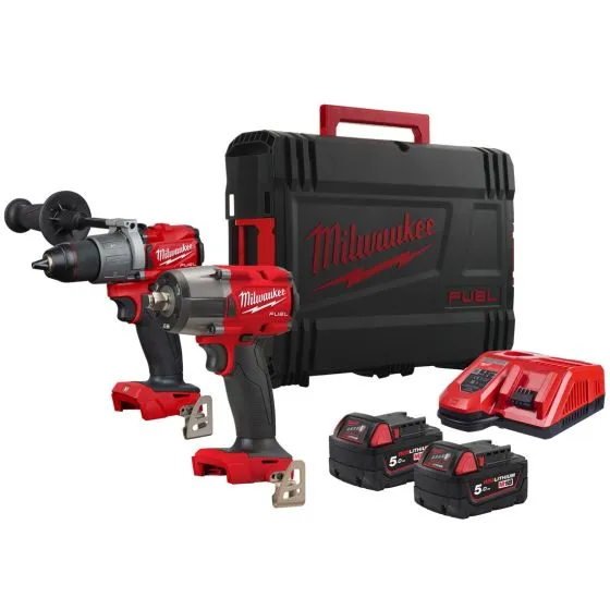 Milwaukee M18 FPP2AD2-502X 18v Combi Drill & Impact Wrench Kit Inc 2x 5.0Ah Batts, 1x M12-18 FC Charger & 1x HD Carry Case