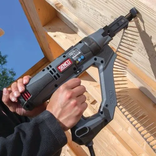 The Senco DS5525-AC has a high torque motor that is a great fit for general contractors that need the versatility to do a wide variety of jobs. Added torque provides plenty of power for composite decks, cement board, or applications where dense engineered materials are needed. Ideal for applications where drill point screws are used to cut through heavy steel. (13-25mm screws require special nosepiece).