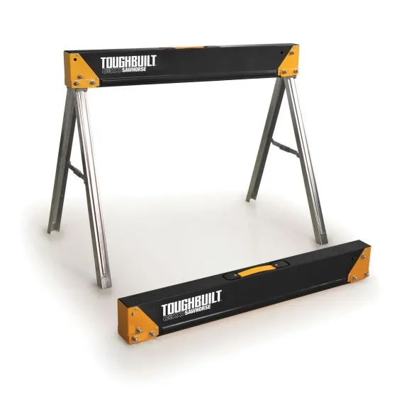 The ToughBuilt C300 Sawhorse and Jobsite Table is durable, rugged and offers unparalleled value. Constructed of 100% high-grade steel, this sawhorse has a remarkable 1100 lb / 500 kg capacity alone, and 2600 lb / 1000 kg per pair.